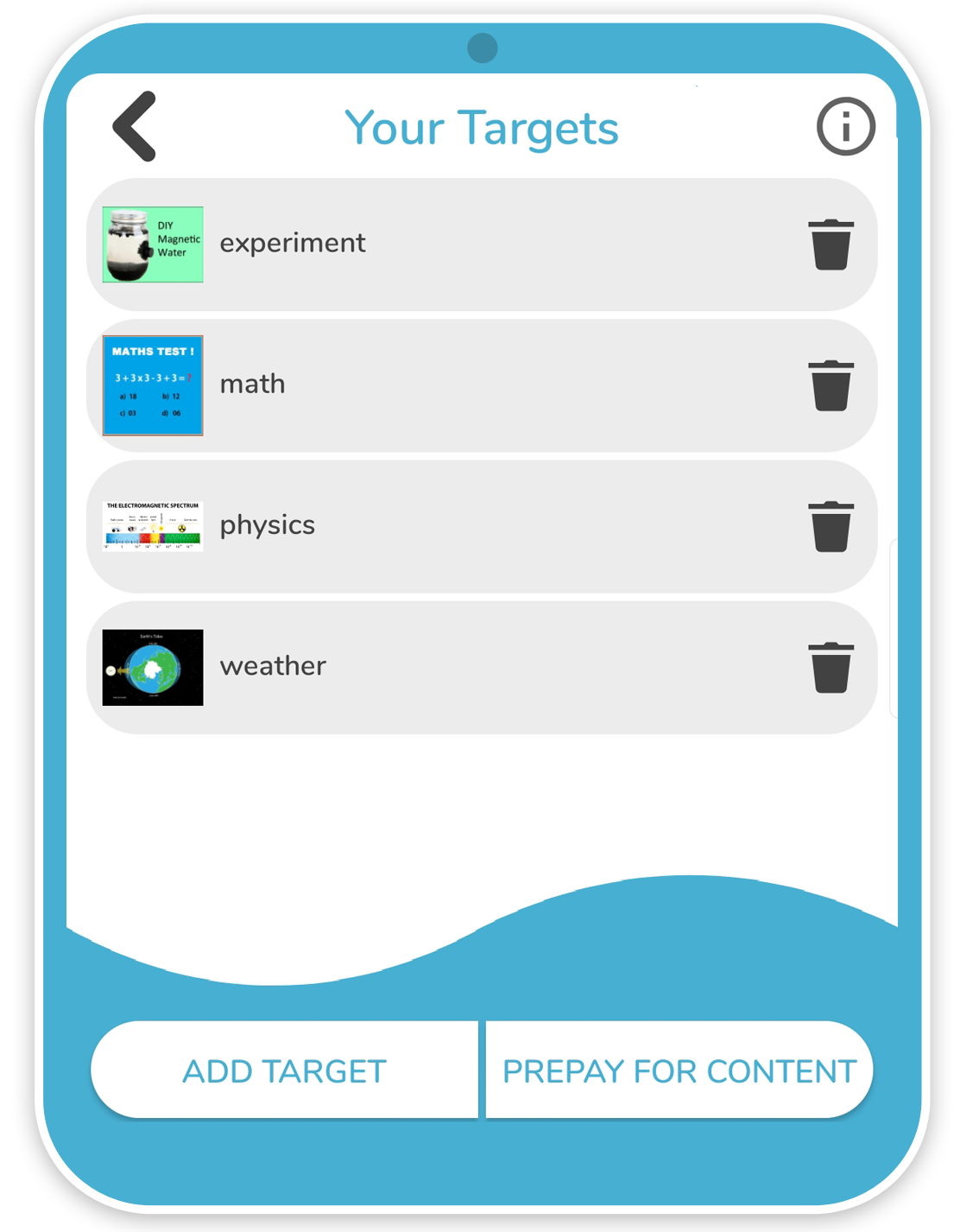 All target/content manipulation is done via the LifeAR app. This simplifies the process and allows you to easily add or remove your targets quickly and easily. Just tap the garbage can to delete or the Add Target button to add a new target.